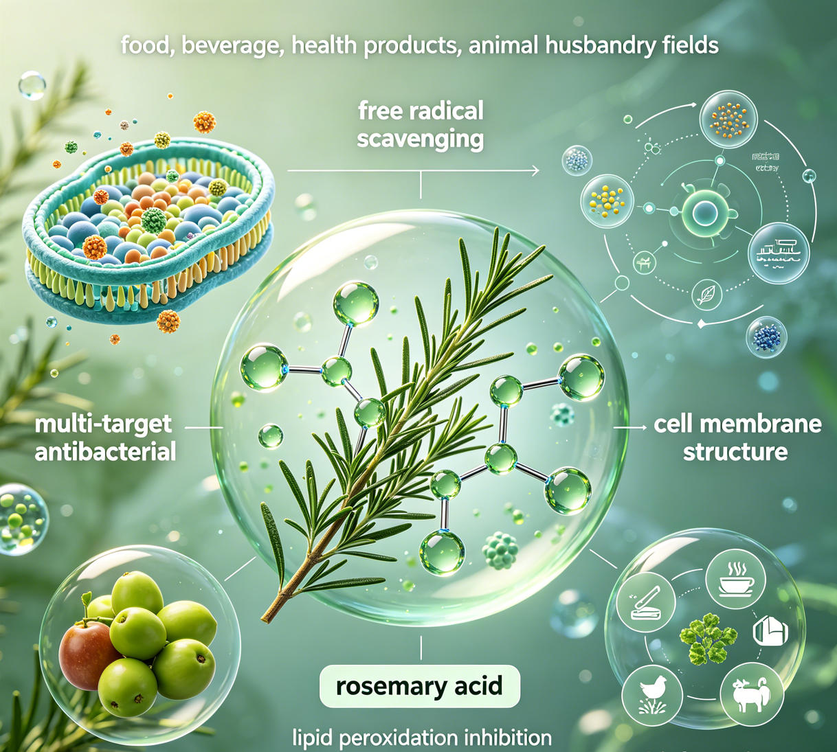 迷迭香酸抑菌作用机制:多靶点调控,筑牢安全防线